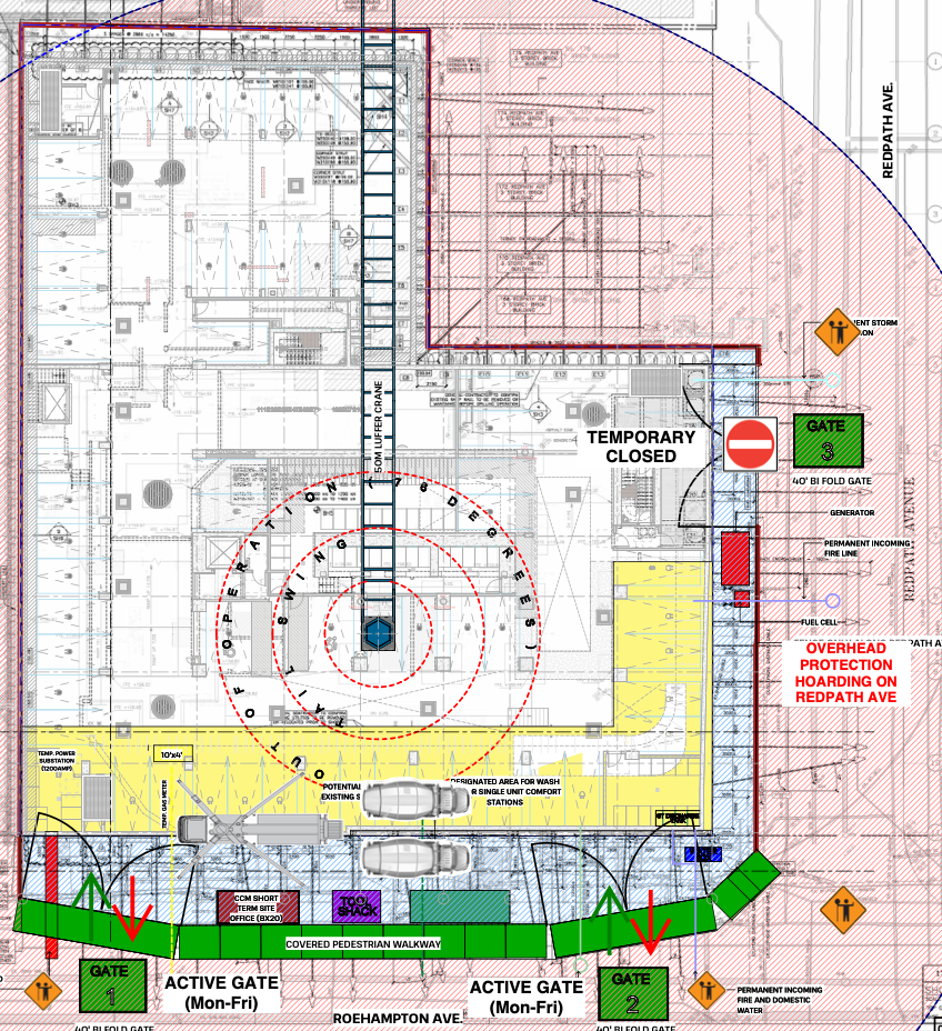No changes: Gate #1 and #2 via Roehampton Ave will be the ONLY gates to the site – ALL deliveries and site traffic will be coming in/out the site through Gate #1 and #2.